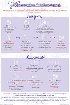 Parce que notre lait est précieux nous vous avons concocté une fiche suprême pour tout connaître sur la bonne conservation du lait maternel ! Cliquez sur l'image pour l'agrandir et la consulter. Vous pouvez l'imprimer pour l'afficher sur votre frigo ou la donner à la personne qui garde votre enfant !